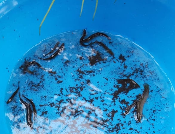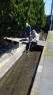 朝一番、ドジョウが上がったよ!と大騒ぎ。