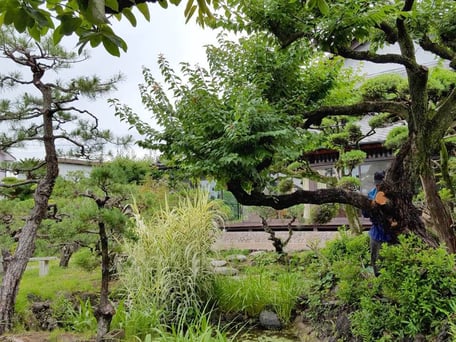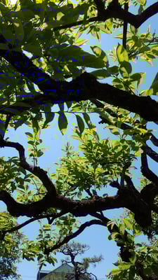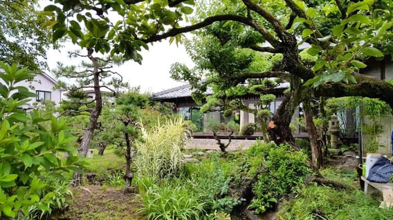 梅の古木の大枝を切ると、庭の奥へ風がまわり始め、