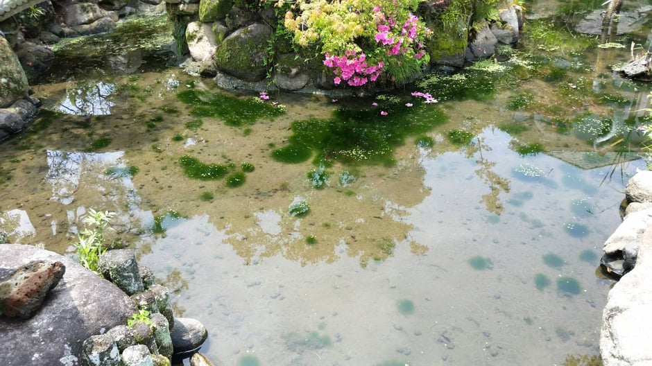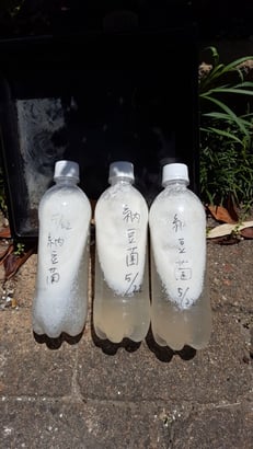 日なたで1週間、納豆菌を培養し、池に入れました。