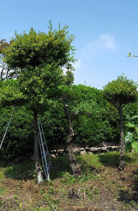 サカキ、シバの3本の木が互いに育ちすぎてぶつかり、病気になっていました。
