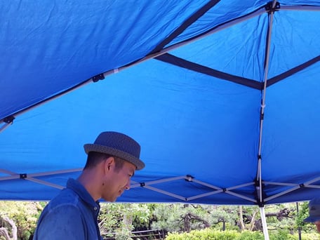 親族の方々が農作業のお道具やテントを買い揃えてくださり、